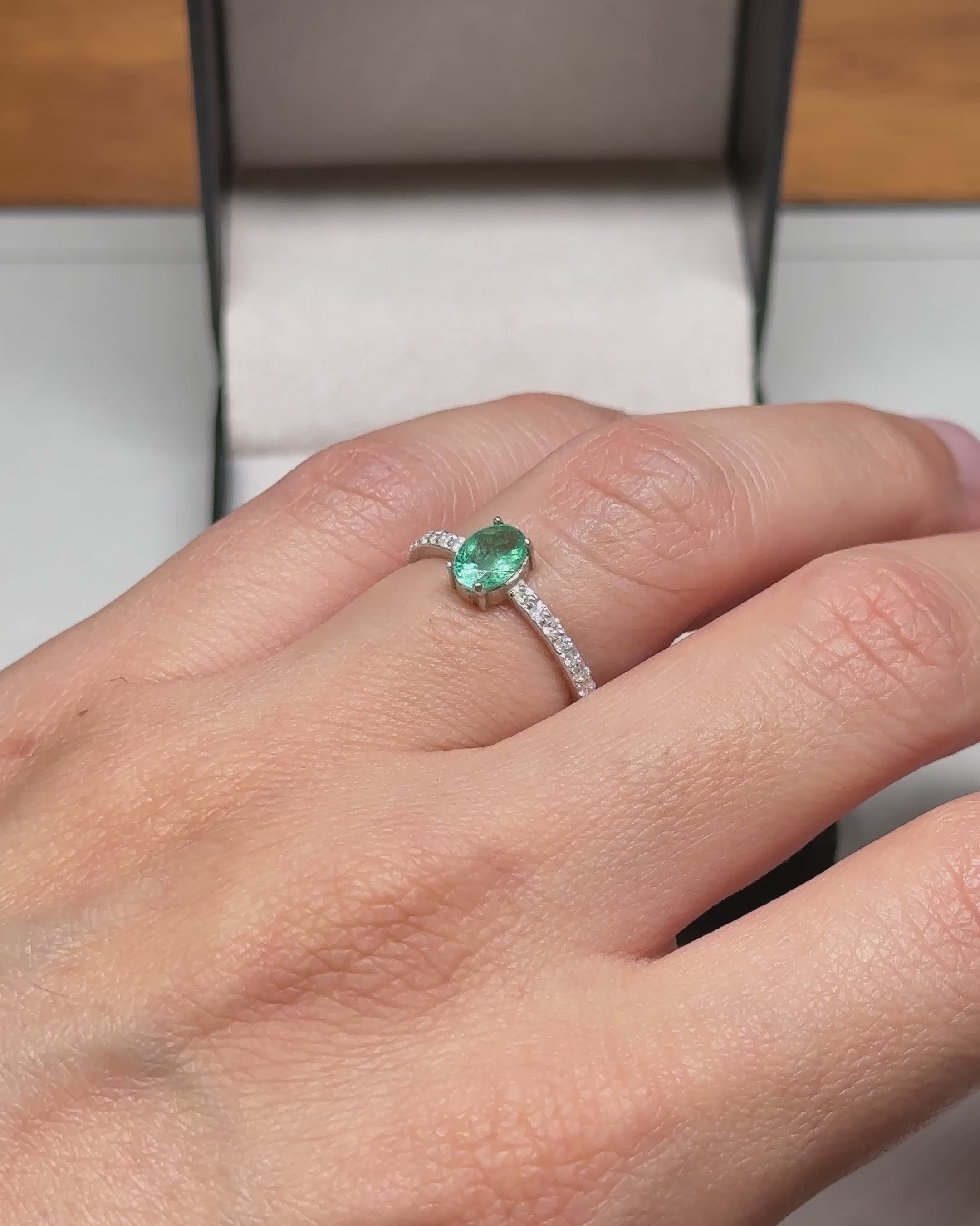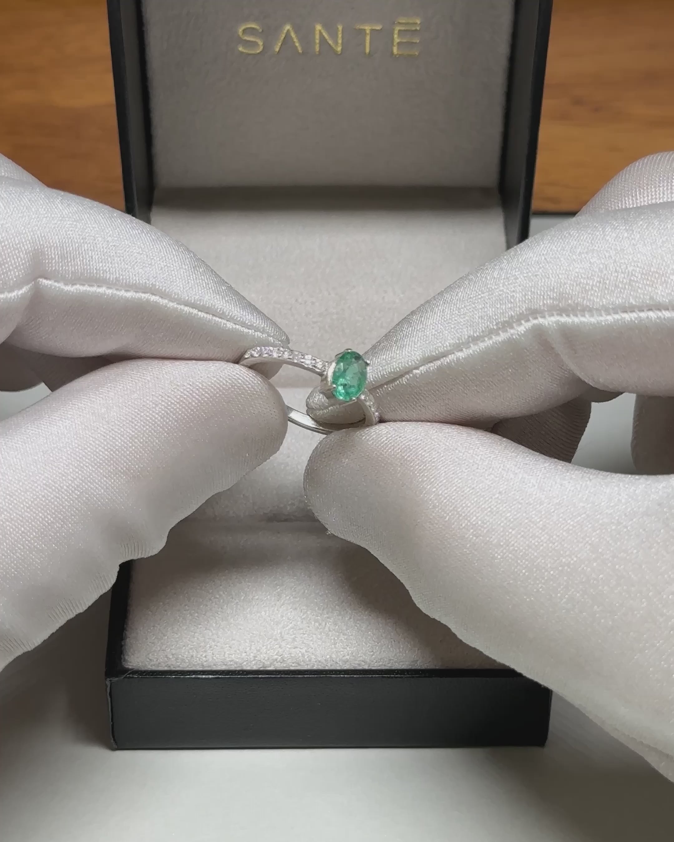 Pedras: Esmeralda Oval 5x7mm + 16 Diamantes 1.5pts 0.24cts Naturais